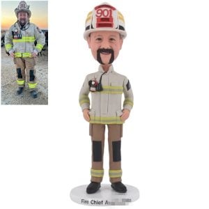 Honor the brave firefighting heroes in your life with a custom fireman firefighter bobblehead, crafted to resemble them in full uniform and hat. This unique and personalized gift is a special way to show your appreciation and recognition for their hard work and dedication.