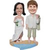 When it comes to wedding bobblehead cake toppers, most couples prefer to have them donning the same outfits they wore on their big day. If you have any pictures showcasing your attire, please upload them in order for replication. Alternatively, if you plan on creating bobbleheads before your wedding and do not have photos, you may provide us with a detailed description of your attire, and we will use our expertise to produce the perfect replica. Additionally, we offer an array of themed options, such as sporty, beach, casual, and humorous styles that you can choose from. If you require any guidance in selecting the ideal clothing or posture for your bobbleheads, our team is always available to provide assistance at [email protected]. Check out some of our past examples below.