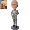 Typically, we will make the posture same as the body model you choose. However, we offer various other postures such as sitting in chairs or on the floor, lying, squatting, leaning, or kneeling. If you order a two-person bobblehead, we can customize it by making them hold hands if they are a couple, or have the groom holding the bride, or two men crossing their arms. We can create any posture that you can imagine.