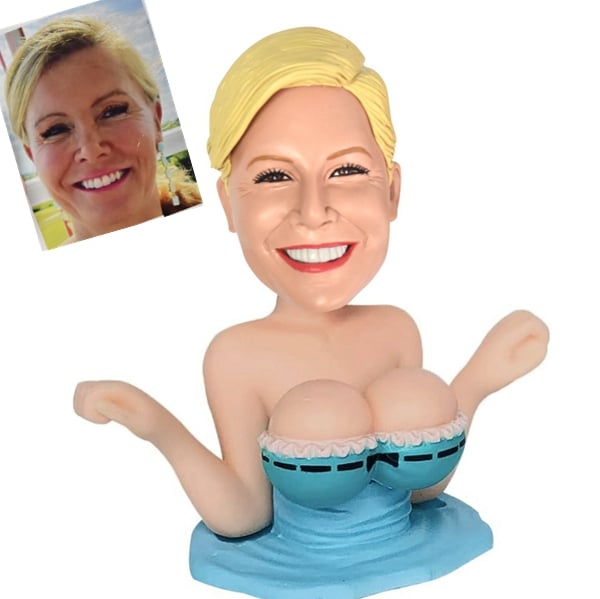 Introducing our latest arrival: the Bobblehead with a fun twist! This unique design features not just a bobbling head, but also a playful shake of the boobs, adding a dash of charm. Customize the face to match any picture you provide, capturing your favorite people or celebrities. Perfect for gifts or collectibles, these playful bobbleheads are sure to bring a smile to anyone’s face!
