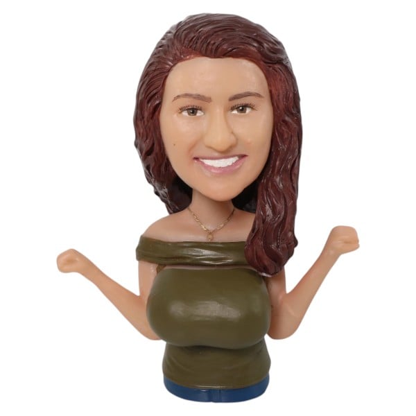Introducing our latest arrival: the Bobblehead with a fun twist! This unique design features not just a bobbling head, but also a playful shake of the boobs, adding a dash of charm. Customize the face to match any picture you provide, capturing your favorite people or celebrities. Perfect for gifts or collectibles, these playful bobbleheads are sure to bring a smile to anyone’s face!