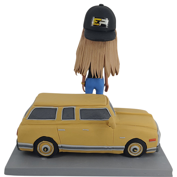 Bobblehead Standing before her Car