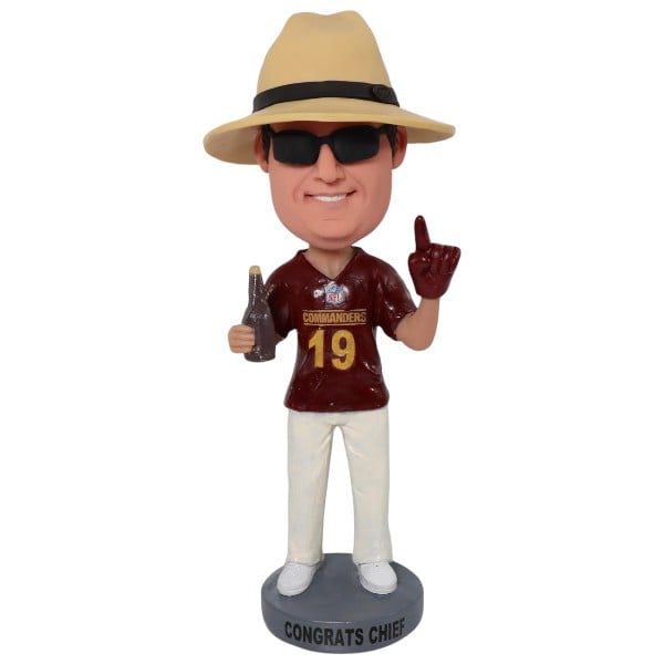 Custm NFL fan bobblehead holding beer with hat