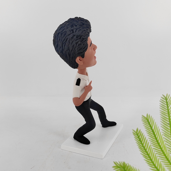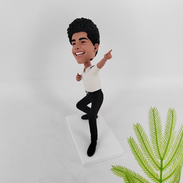 Typically, we will make the posture same as the body model you choose. However, we offer various other postures such as sitting in chairs or on the floor, lying, squatting, leaning, or kneeling. If you order a two-person bobblehead, we can customize it by making them hold hands if they are a couple, or have the groom holding the bride, or two men crossing their arms. We can create any posture that you can imagine.