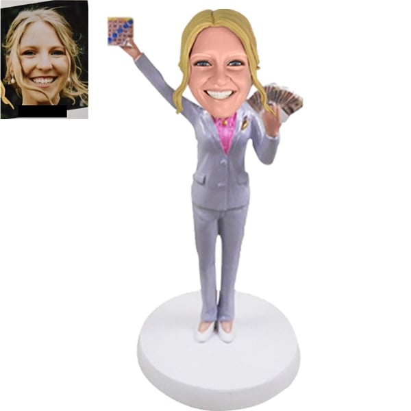 Dear BBobbler, I received my bobble head and was THRILLED with the results! I SO appreciate the time you took to get my bobble head exactly like I wanted it. I didnt have a normal request! This was part of a personal joke we had with the woman the bobble head was of. I sent photos of her facial expression, and you were right on point. The likeness was exquisite! This will forever be one of her favorite gifts! I have added photos. I was so happy with the likeness! Y'all are the best! It was packaged PERFECTLY and survived the shipping. I looked online at several sites that made bobble heads, and you seemed to be the best. Now I KNOW you are the best! Thank you again so much!