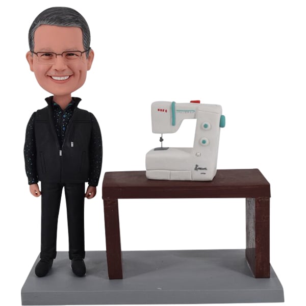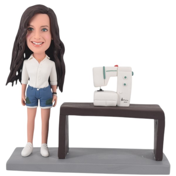 Custom Sewer Bobble Head with sewing machine on desk seamstress