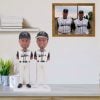 Typically, we will make the posture same as the body model you choose. However, we offer various other postures such as sitting in chairs or on the floor, lying, squatting, leaning, or kneeling. If you order a two-person bobblehead, we can customize it by making them hold hands if they are a couple, or have the groom holding the bride, or two men crossing their arms. We can create any posture that you can imagine.