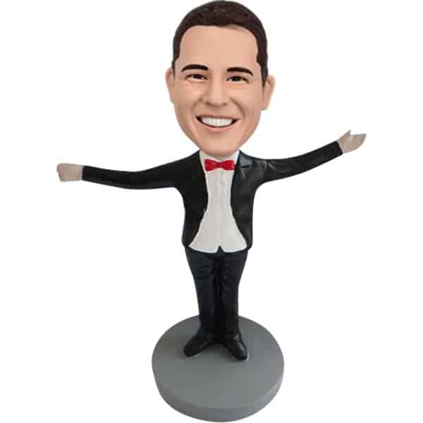 Typically, we will make the posture same as the body model you choose. However, we offer various other postures such as sitting in chairs or on the floor, lying, squatting, leaning, or kneeling. If you order a two-person bobblehead, we can customize it by making them hold hands if they are a couple, or have the groom holding the bride, or two men crossing their arms. We can create any posture that you can imagine.