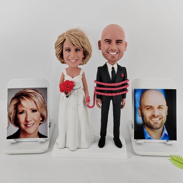 4 : If you're interested making your wedding dolls in a cake topper, please select the "I want to make it a cake topper" option from the available choices when ordering a bobblehead from Bbobbler. It's important to keep in mind that the head will be made to stationary and it will be scaled down in size to better match the proportions of a real person's body.