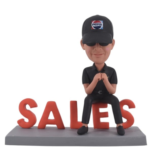 Custom Bobblehead sitting on words with Pepsi hat