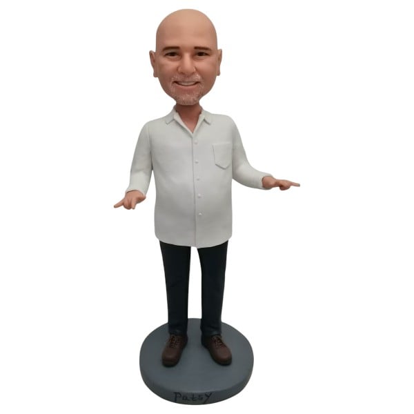 Typically, we will make the posture same as the body model you choose. However, we offer various other postures such as sitting in chairs or on the floor, lying, squatting, leaning, or kneeling. If you order a two-person bobblehead, we can customize it by making them hold hands if they are a couple, or have the groom holding the bride, or two men crossing their arms. We can create any posture that you can imagine.