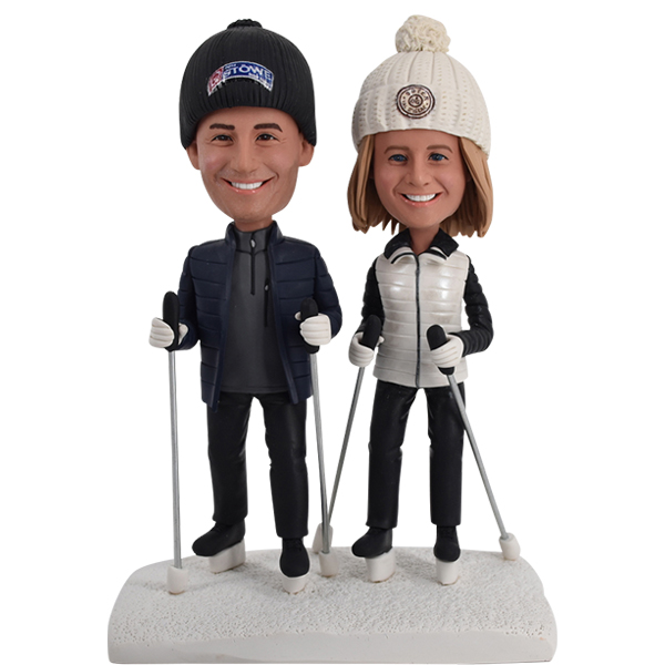 Custom Bobbleheads Skiing Couple Celebrating 50 Years
