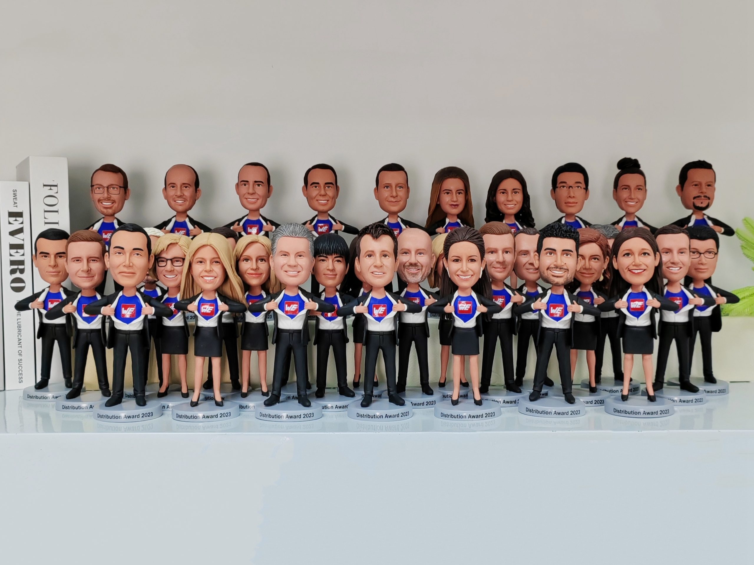 I want to let you know, the dolls were a MAJOR hit with our team. Everyone could not believe the craftsmanship of the doll, how much it looks like the person, and the wonderful details, like the pin on his lapel. Our retiring director was asked to sign them and people are so excited for the second shipment to arrive. While he is not usually a person who enjoys being celebrated very much, he is a HUGE fan of his mini bobble head dolls. I can't thank you enough for everything and the wonderful customer service! What an amazing experience. We have had several requests for a doll from people outside of our team and are not sure if we will need to order more dolls to fill the requests. Waiting to see if we fill the requests with the second shipment, but might need to reach out for another order. Thank you again.