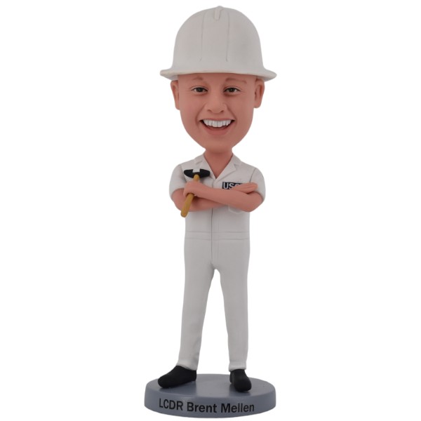 Custom Engineer Bobble Head with blue coveralls, work boots and hardhat