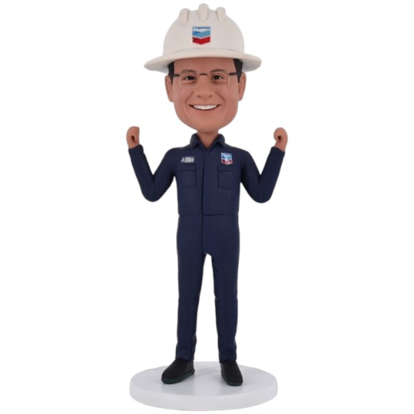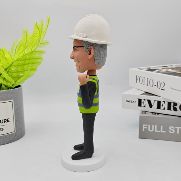 This engineer bobblehead is custom-made based on a photo. We can replicate the uniform, face, posture, and helmet to closely match the picture. Additionally, we can add logos or names if required. Our service offers the best resemblance, skilled artists, competitive pricing, making us the best choice for creating personalized bobbleheads! ?