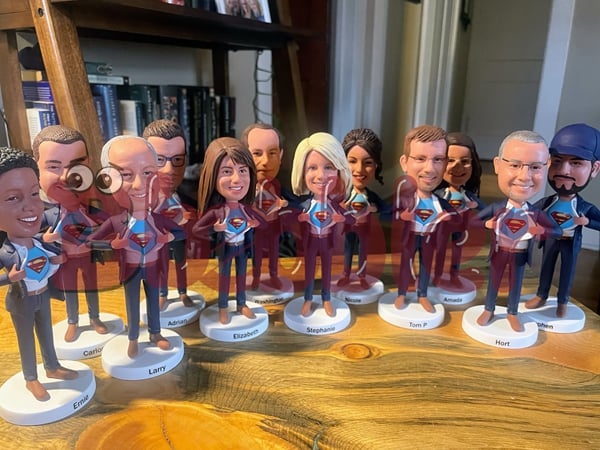 I want to let you know, the dolls were a MAJOR hit with our team. Everyone could not believe the craftsmanship of the doll, how much it looks like the person, and the wonderful details, like the pin on his lapel. Our retiring director was asked to sign them and people are so excited for the second shipment to arrive. While he is not usually a person who enjoys being celebrated very much, he is a HUGE fan of his mini bobble head dolls. I can't thank you enough for everything and the wonderful customer service! What an amazing experience. We have had several requests for a doll from people outside of our team and are not sure if we will need to order more dolls to fill the requests. Waiting to see if we fill the requests with the second shipment, but might need to reach out for another order. Thank you again.