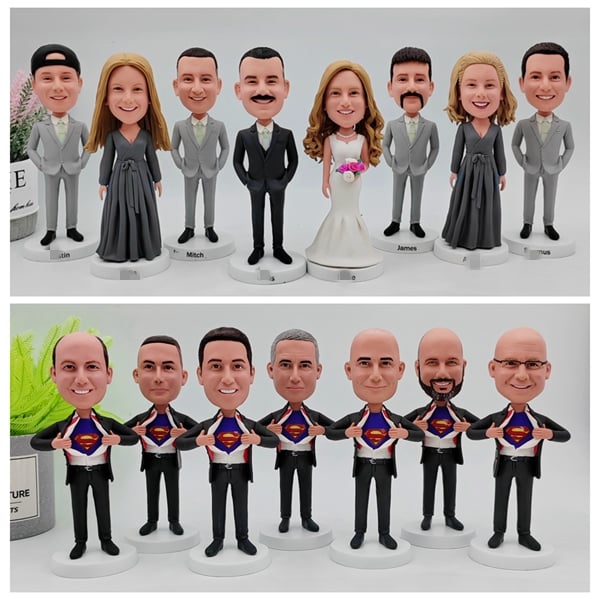 I wanted to leave a review, I typically don’t but the service I received was out of this world, they were helpful, and super patient with some changes we made. We ordered 7 bobble heads that were custom for our groomsmen for our upcoming wedding and we recently received them. They look just like them it is so cool! Both husband and I are so excited to be giving these as gifts. I have highly recommended your store for any type of customized gifts for friends and family that ask. Thank you so much for all your hard work.