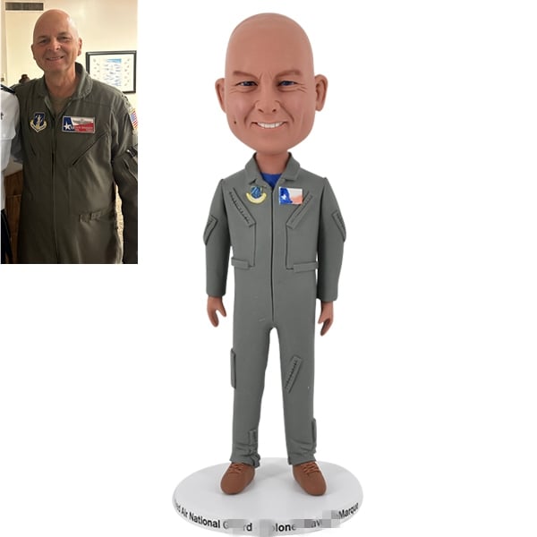 You have two options when it comes to clothing for your order. You can choose to have it made to look exactly like the model on our website or you can select "I need changes to outfit/posture" for an additional $10 and we will customize it to match your photos. In case you don't have any pictures, please leave a detailed description of the clothing you want in the comment box. Please be aware that if you go with our fully custom options, we craft the bobblehead from head to toe, and there's no additional charge for custom clothing!