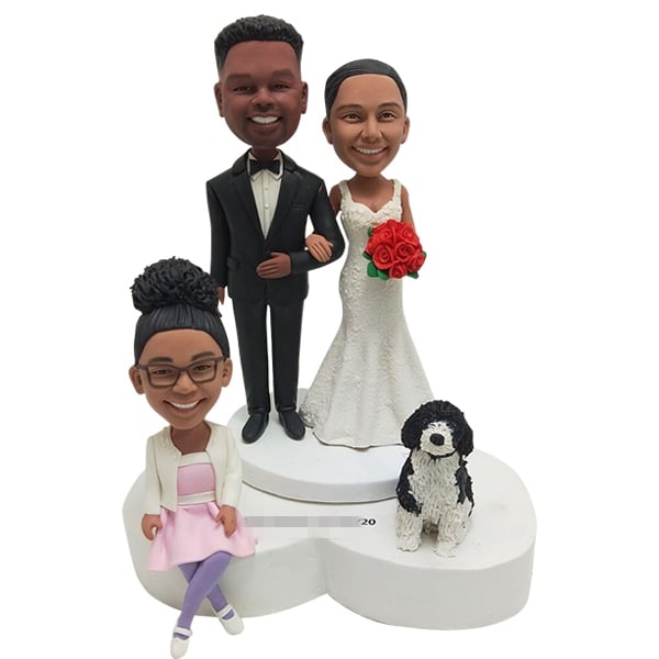 Custom Wedding Cake Topper Bobblehead with kid and dog