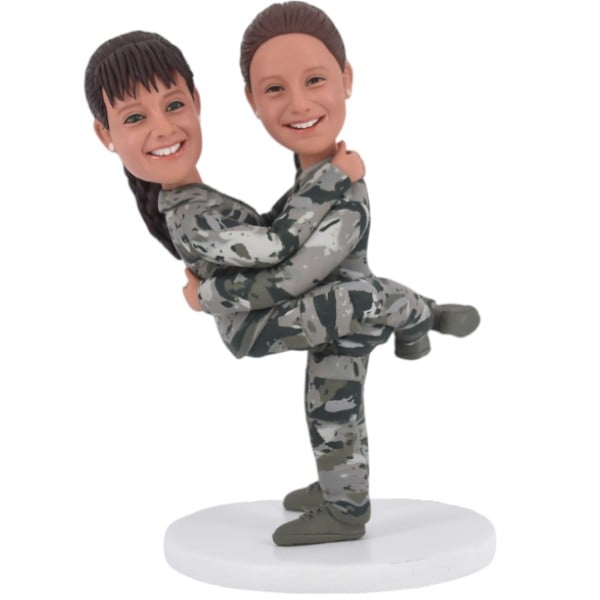Typically, we will make the posture same as the body model you choose. However, we offer various other postures such as sitting in chairs or on the floor, lying, squatting, leaning, or kneeling. If you order a two-person bobblehead, we can customize it by making them hold hands if they are a couple, or have the groom holding the bride, or two men crossing their arms. We can create any posture that you can imagine.