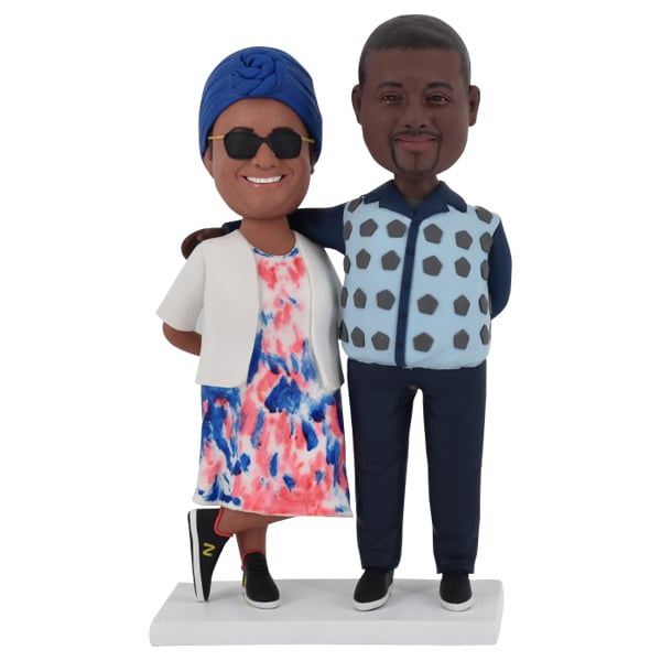 Typically, we will make the posture same as the body model you choose. However, we offer various other postures such as sitting in chairs or on the floor, lying, squatting, leaning, or kneeling. If you order a two-person bobblehead, we can customize it by making them hold hands if they are a couple, or have the groom holding the bride, or two men crossing their arms. We can create any posture that you can imagine.