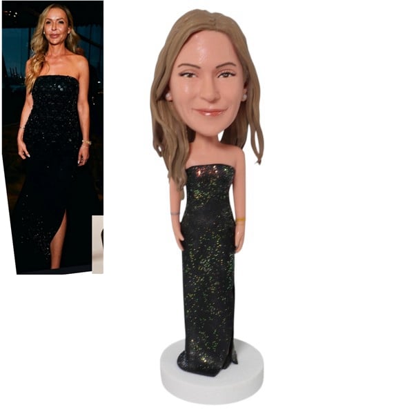Female Birthday Bobble Head Custom in Black Dress