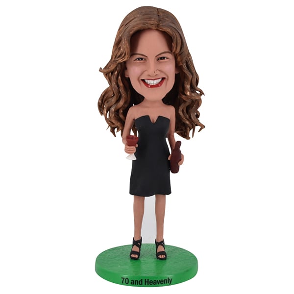 Female Bobblehead with wine bottle and glass martini
