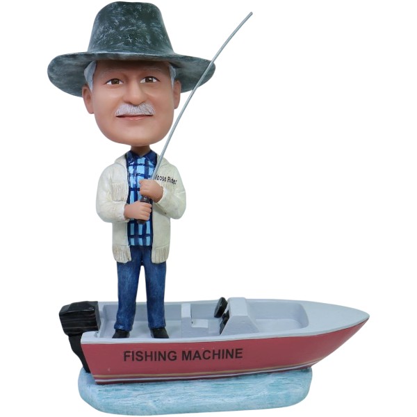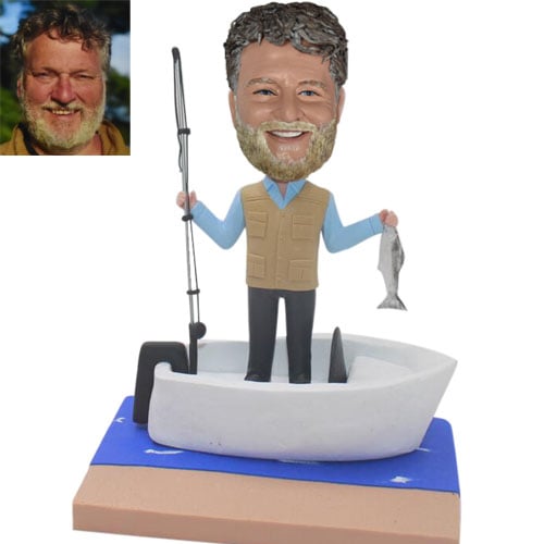 Fishing bobblehead doll in boat