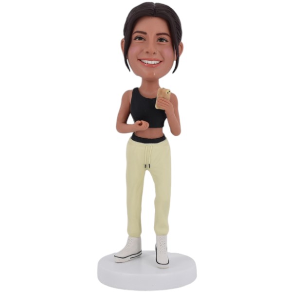 Fitness Female Bobblehead Custom with phone