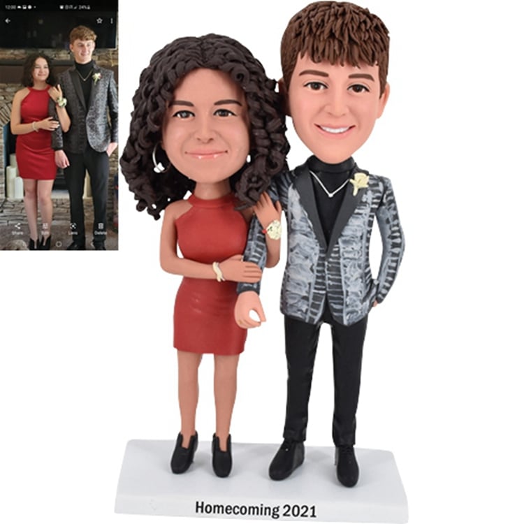 Typically, we will make the posture same as the body model you choose. However, we offer various other postures such as sitting in chairs or on the floor, lying, squatting, leaning, or kneeling. If you order a two-person bobblehead, we can customize it by making them hold hands if they are a couple, or have the groom holding the bride, or two men crossing their arms. We can create any posture that you can imagine.