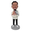Typically, we will make the posture same as the body model you choose. However, we offer various other postures such as sitting in chairs or on the floor, lying, squatting, leaning, or kneeling. If you order a two-person bobblehead, we can customize it by making them hold hands if they are a couple, or have the groom holding the bride, or two men crossing their arms. We can create any posture that you can imagine.