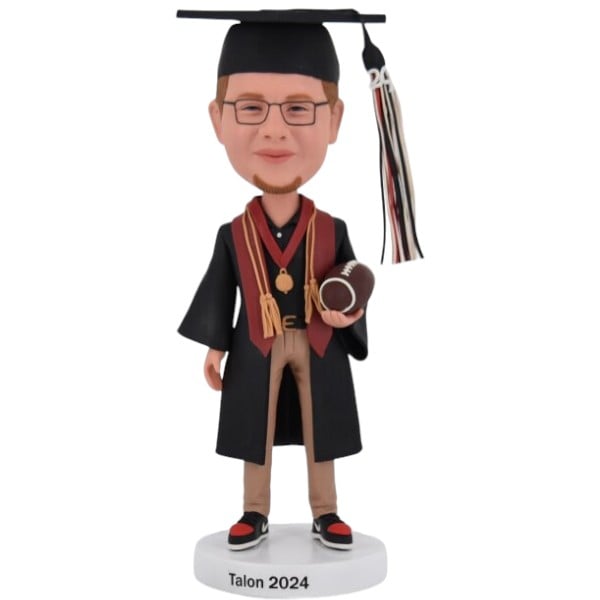Graduation Bobblehead holding football