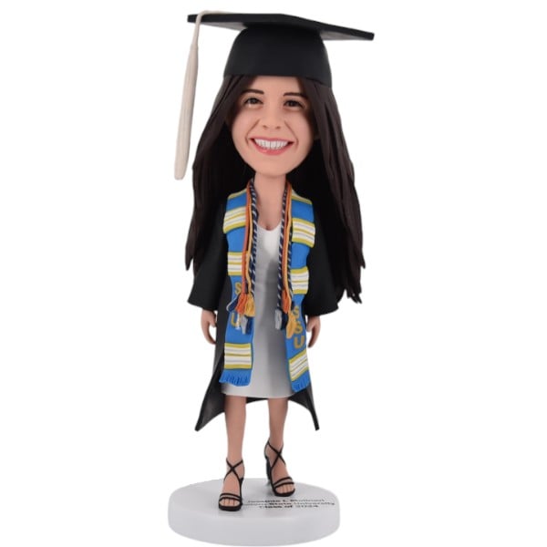Looking for the perfect graduation season gift idea? : Look no further than our customizable Graduation Bobbleheads! Our unique bobbleheads feature a personalized image of the graduate wearing a matching gown to their graduating year and their class name on the bottom stand, making for a truly memorable keepsake. While other vendors may offer similar products, BBobbler stands out for our exceptional quality and attention to details. Choose BBobbler for a graduation gift that will be cherished for years to come.