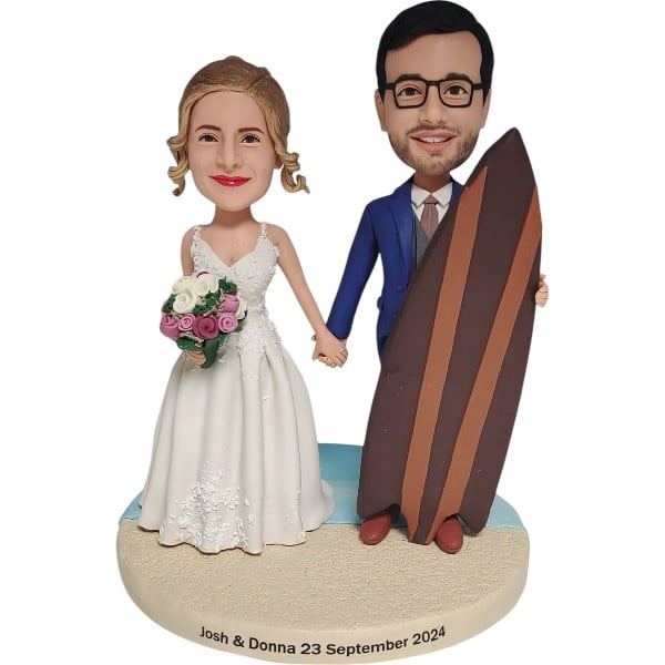 Groom and Bride Bobblehead holding surfboard