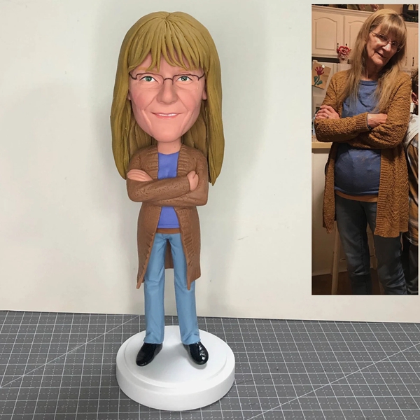 My friend just received her bobble head in the mail and she was thrilled! It looks exactly like her, including the cable-knit sweater and jewelry! The facial features are an exact replica. I don’t have her permission to post it or have it on the Internet, but I wanted you to see how exact it looks! A huge THANK YOU to everyone who worked on it!