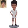 Typically, we will make the posture same as the body model you choose. However, we offer various other postures such as sitting in chairs or on the floor, lying, squatting, leaning, or kneeling. If you order a two-person bobblehead, we can customize it by making them hold hands if they are a couple, or have the groom holding the bride, or two men crossing their arms. We can create any posture that you can imagine.
