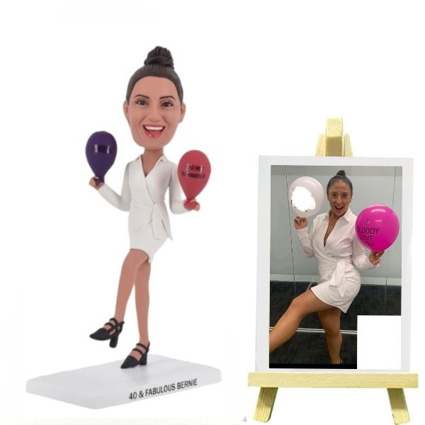 Personalized Bobble Head Holding Balloons