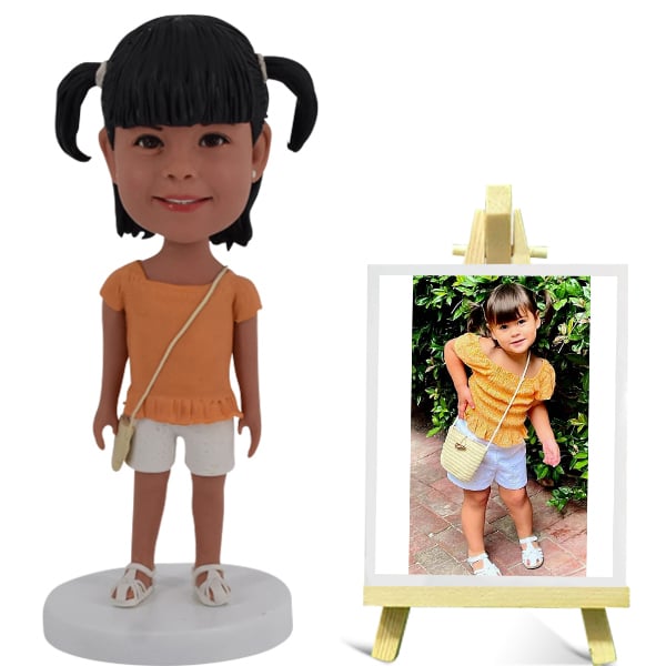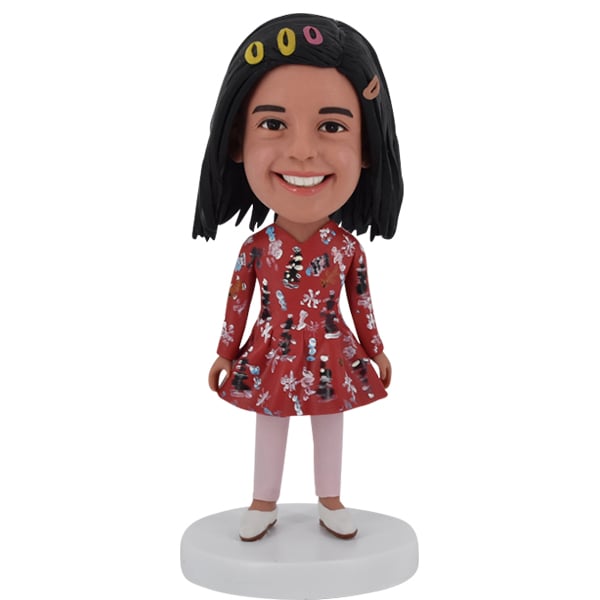 You have two options when it comes to clothing for your order. You can choose to have it made to look exactly like the model on our website or you can select "I need changes to outfit/posture" for an additional $10 and we will customize it to match your photos. In case you don't have any pictures, please leave a detailed description of the clothing you want in the comment box. Please be aware that if you go with our fully custom options, we craft the bobblehead from head to toe, and there's no additional charge for custom clothing!