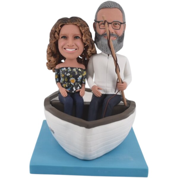 Personalized double fishing bobbleheads in boat