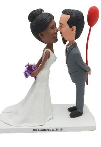 Personalized Kissing Wedding Couple Bobblehead Cake Topper
