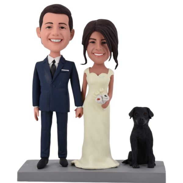 When it comes to wedding bobblehead cake toppers, most couples prefer to have them donning the same outfits they wore on their big day. If you have any pictures showcasing your attire, please upload them in order for replication. Alternatively, if you plan on creating bobbleheads before your wedding and do not have photos, you may provide us with a detailed description of your attire, and we will use our expertise to produce the perfect replica. Additionally, we offer an array of themed options, such as sporty, beach, casual, and humorous styles that you can choose from. If you require any guidance in selecting the ideal clothing or posture for your bobbleheads, our team is always available to provide assistance at [email protected]. Check out some of our past examples below.