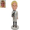 Typically, we will make the posture same as the body model you choose. However, we offer various other postures such as sitting in chairs or on the floor, lying, squatting, leaning, or kneeling. If you order a two-person bobblehead, we can customize it by making them hold hands if they are a couple, or have the groom holding the bride, or two men crossing their arms. We can create any posture that you can imagine.