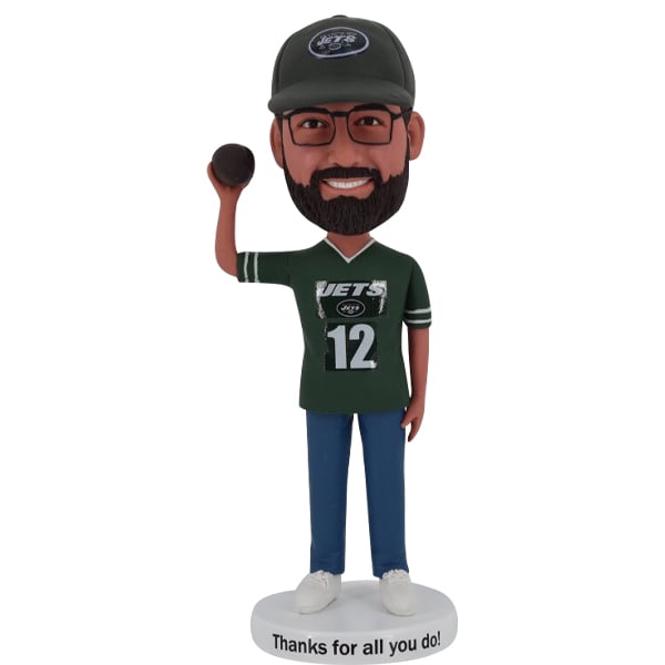 At no added cost, we provide the option to include small accessories to your bobblehead, such as rings, ties, necklaces, earrings, hats, crowns, nose ring and etc. If you opt for a sports model, we are happy to add a number, name, or logo and ensure that the clothing resembles your team's uniforms.