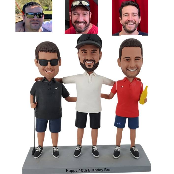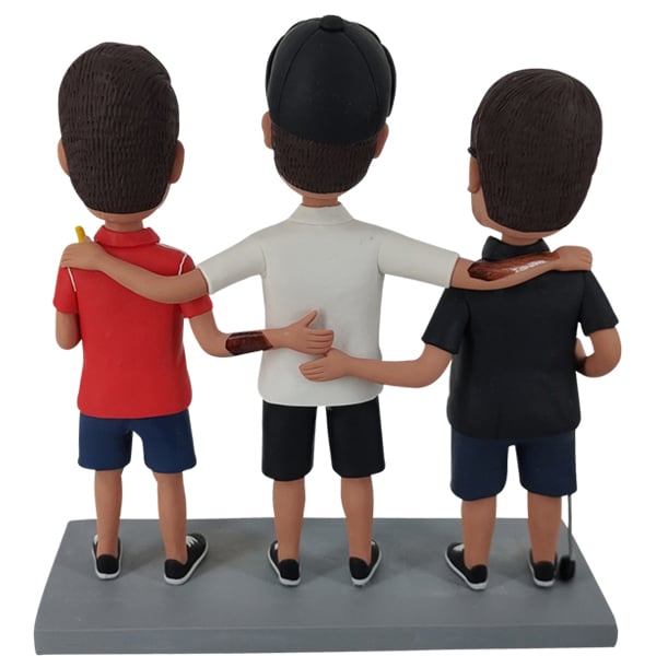 The adorable three-man bobblehead on one base makes a great gift for Father’s day, birthdays, anniversaries, bosses, and colleagues. One man is holding a golf club, while another is holding a beer. We offer options to customize their clothing, posture, and even the number of people on the base. For any inquiries about this product, please contact us at [email protected].