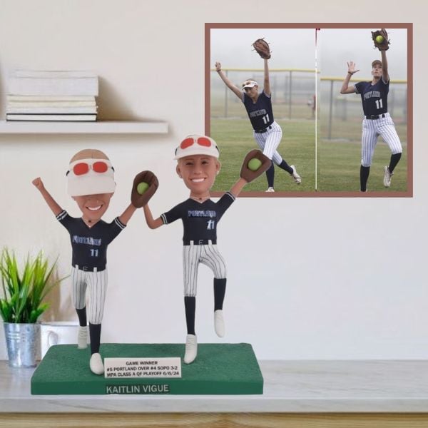 Two Baseball Bobbleheads Custom Player on one base