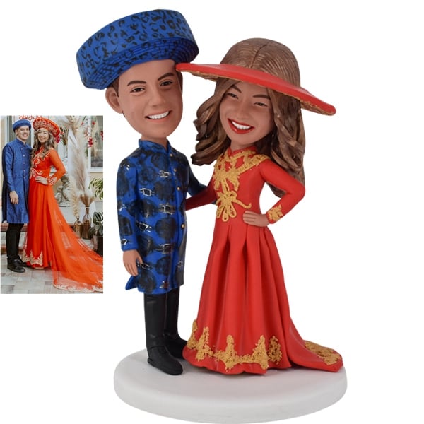 Vietnamese Wedding Bobblehead Cake Topper