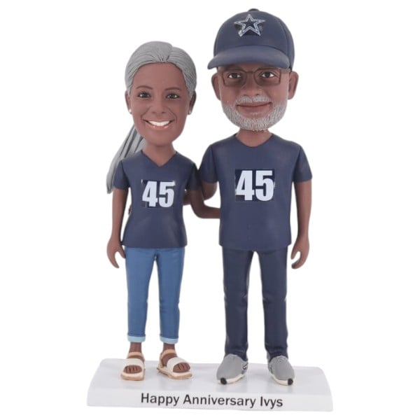 Typically, we will make the posture same as the body model you choose. However, we offer various other postures such as sitting in chairs or on the floor, lying, squatting, leaning, or kneeling. If you order a two-person bobblehead, we can customize it by making them hold hands if they are a couple, or have the groom holding the bride, or two men crossing their arms. We can create any posture that you can imagine.